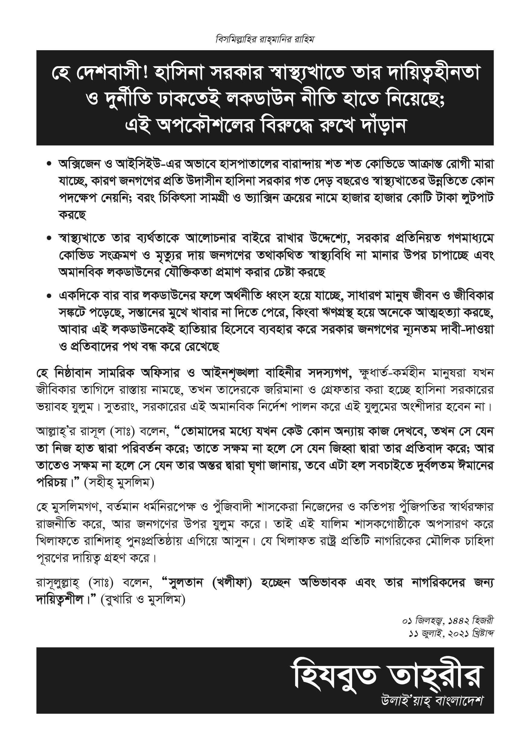 Homeলিফলেটহে দেশবাসী ! হাসিনা সরকার স্বাস্থ্যখাতে তার দায়িত্বহীনতা ও দুর্নীতি ঢাকতেই লকডাউন নীতি হাতে নিয়েছে; এই অপকৌশলের বিরুদ্ধে রুখে দাঁড়ানলিফলেট হে দেশবাসী ! হাসিনা সরকার স্বাস্থ্যখাতে তার দায়িত্বহীনতা ও দুর্নীতি ঢাকতেই লকডাউন নীতি হাতে নিয়েছে; এই অপকৌশলের বিরুদ্ধে রুখে দাঁড়ান Last updated এপ্রিল 29, 2022 Share Share